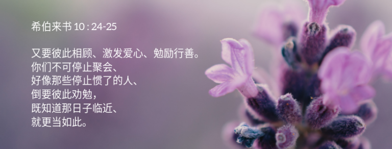 最后,我以圣经希伯来书 10 章 24-25 节与大家分享:又要彼此相顾、激发爱心、勉励行善。你们不可停止聚会、好像那些停止惯了的人、倒要彼此劝勉,既知道那日子临近、就更当如此。